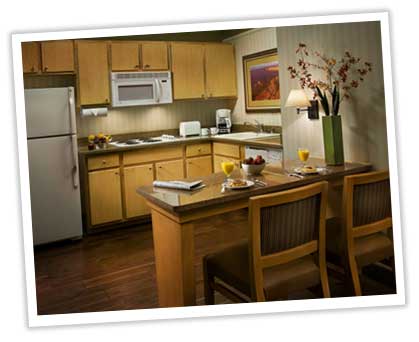 Relax with New LCD TVs, i-Home stereo with i-Pod dock, and Free WiFi throughout the property and work desks with ergonomic chairs, halogen lamps, and laptop size safes for your valuables. All suites also have fully equipped residential style kitchens and dining areas accented with marble countertops.