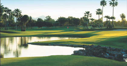 The Palm has 10 magnificent water holes a newly designed front nine, and as its name suggests, has numerous, large palm trees dotted throughout the course. The Pine is characterized by narrow fairways, which issue a sportful challenge, and it features a multitude of mature pine trees. For average golfers, the men's and women's tees provide a particularly enjoyable golfing experience. Host of the Stratton Scottsdale Golf School.